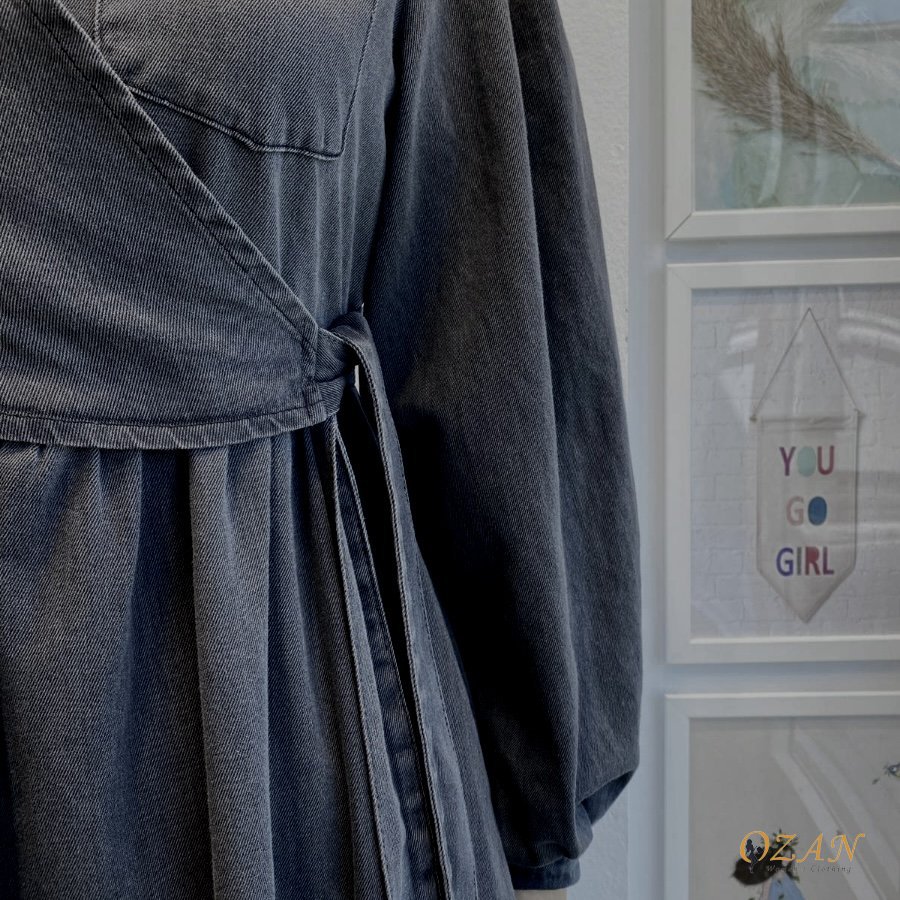 زرار من قدام و ربطة جانبية ، مضموم مغيط من ورا