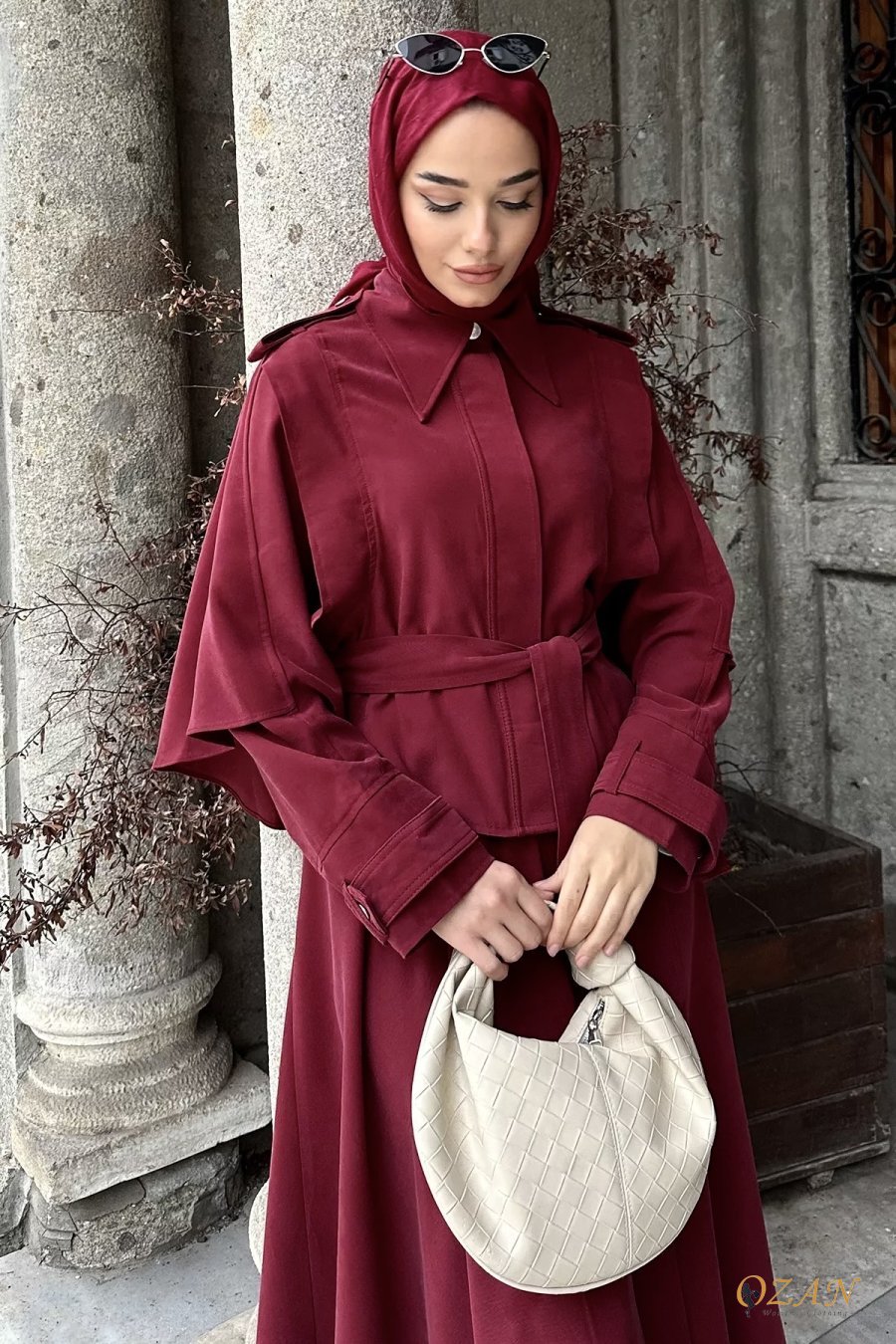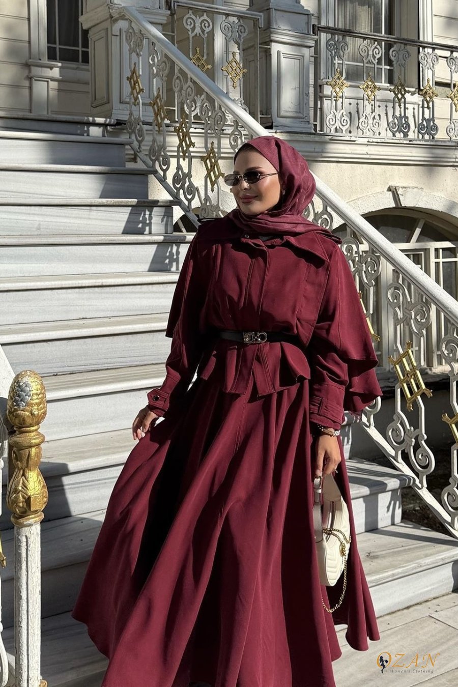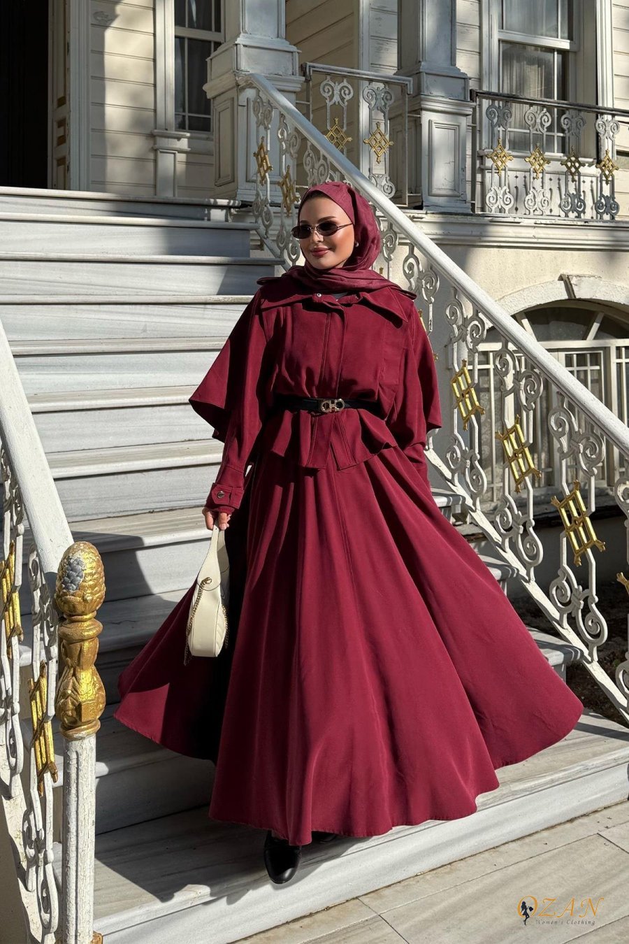قطعتين و ربطة ع الخصر ، التنورة طولها كامل وافي ، الجاكيت من قدام اله زرار كبسات ، مع حزام ع الاكمام و الاكتاف