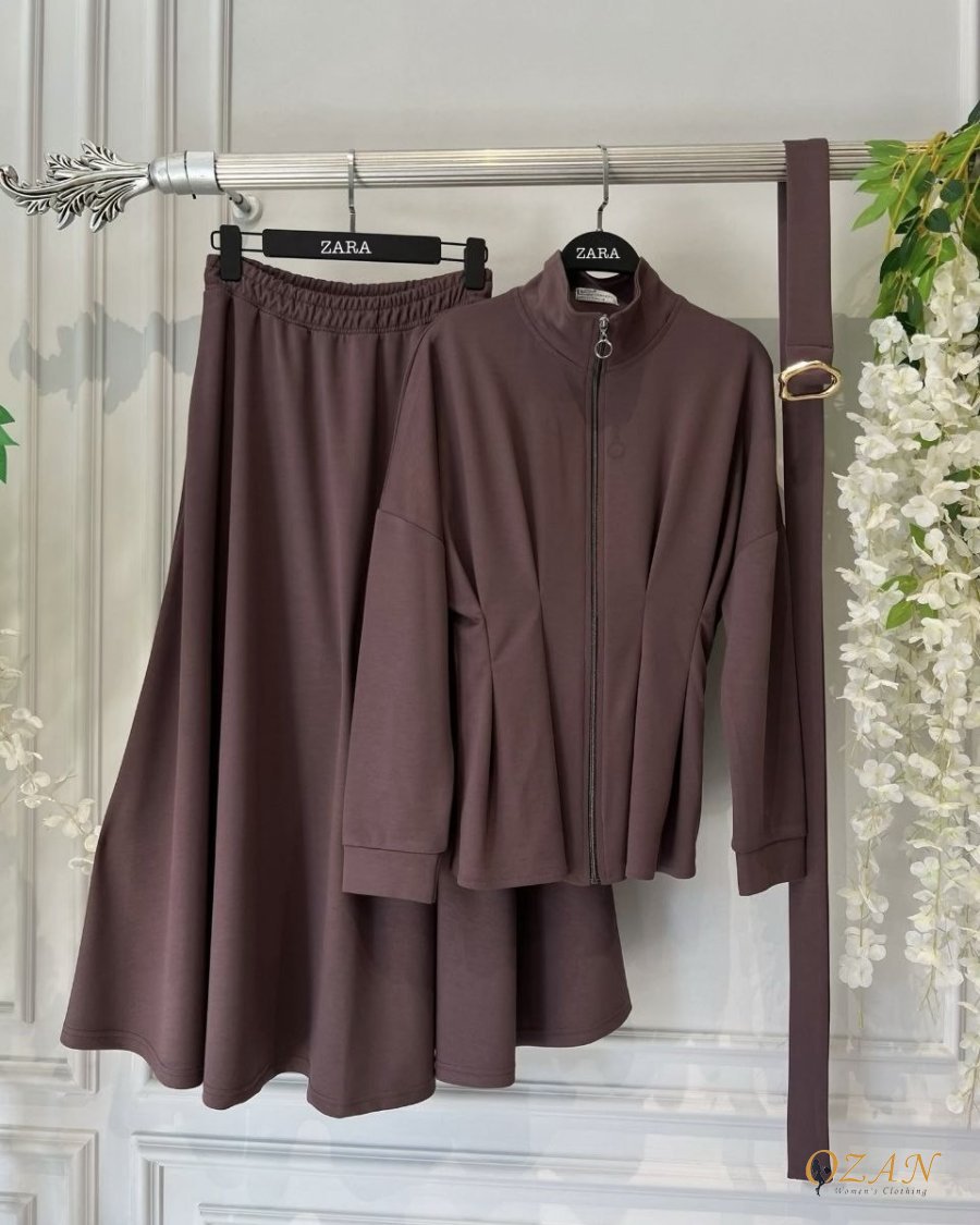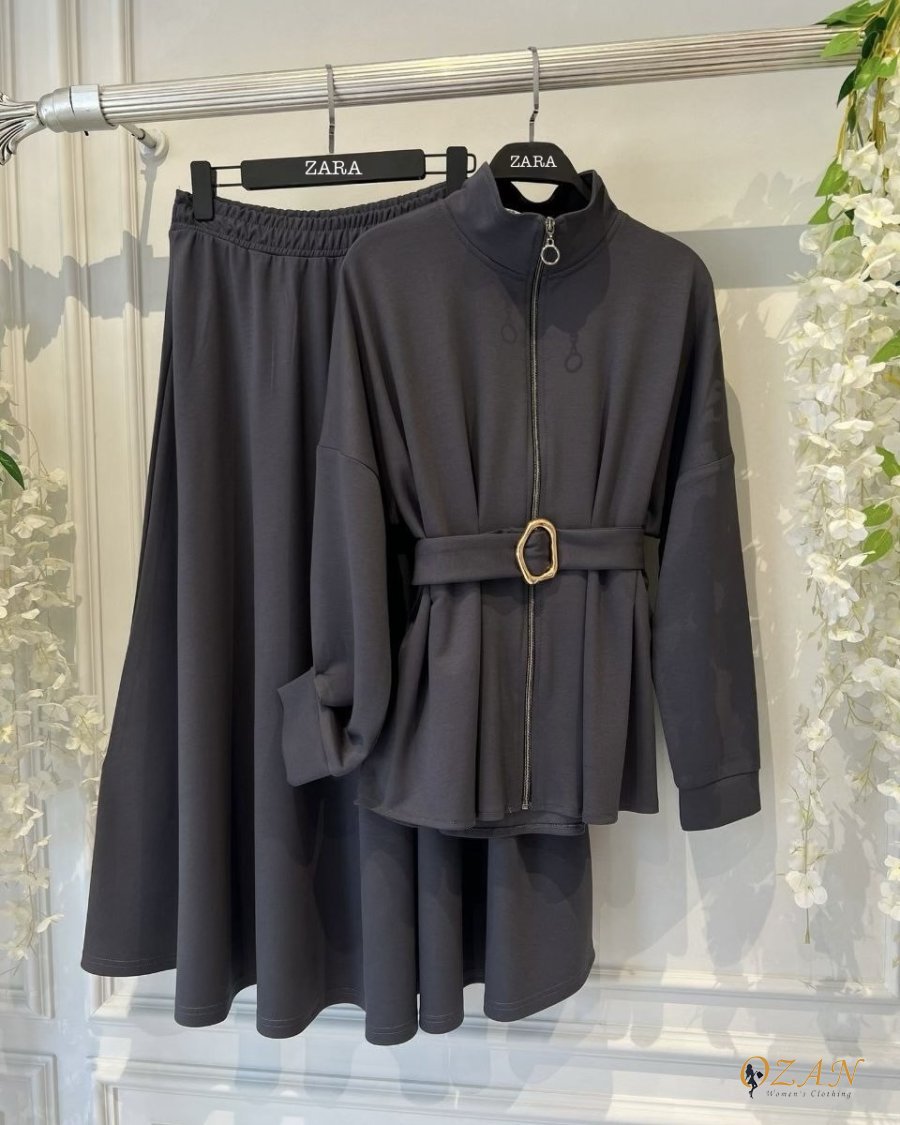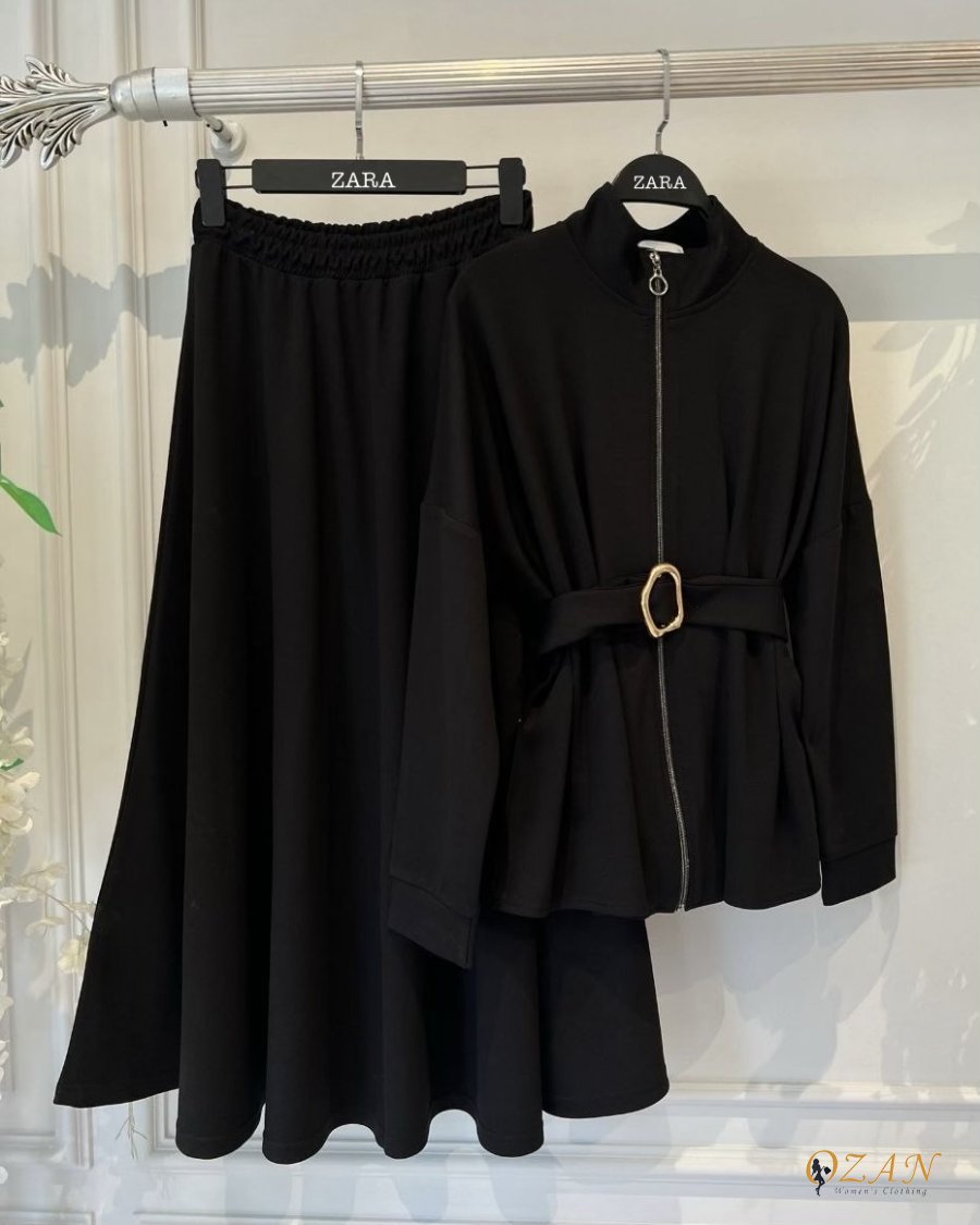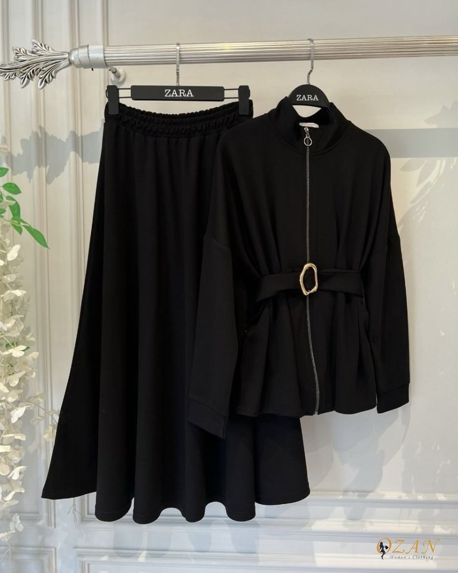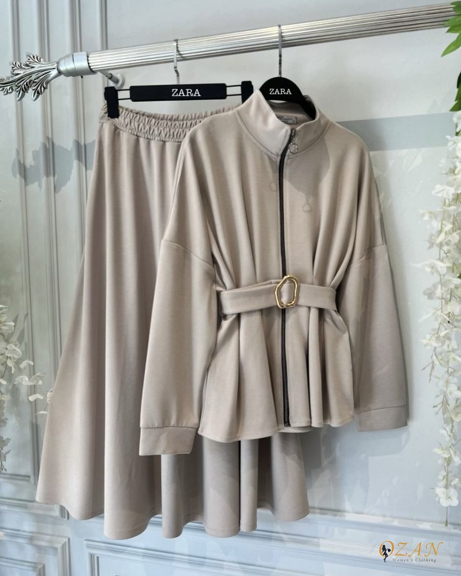 الطقم شامل للجاكيت مع التنورة و الحزام