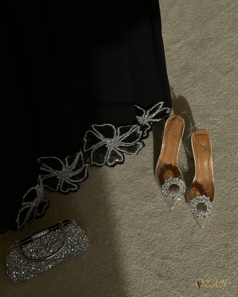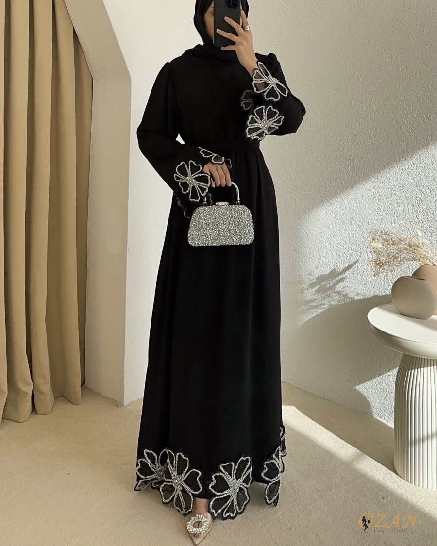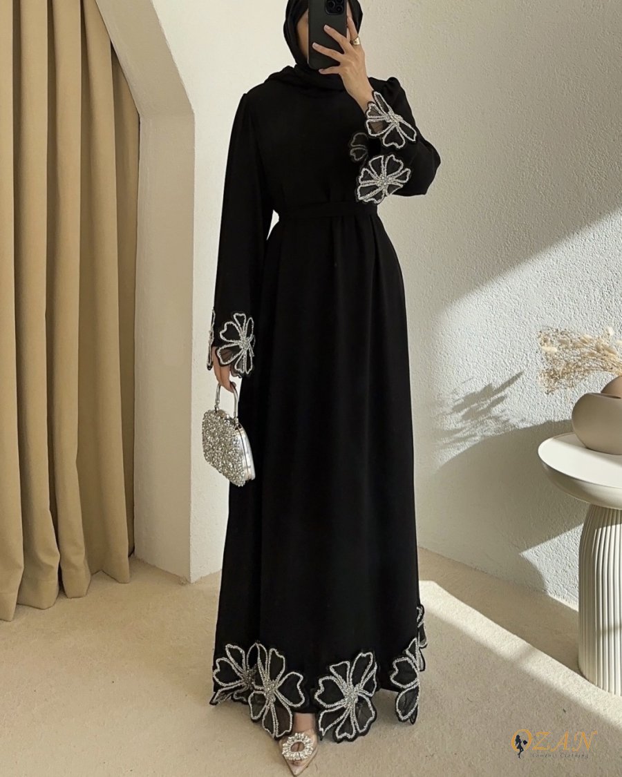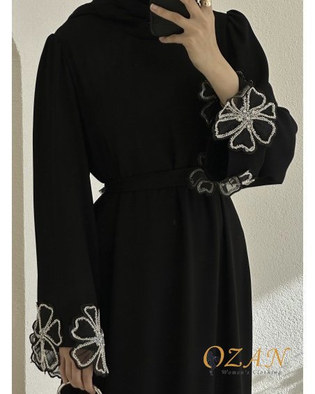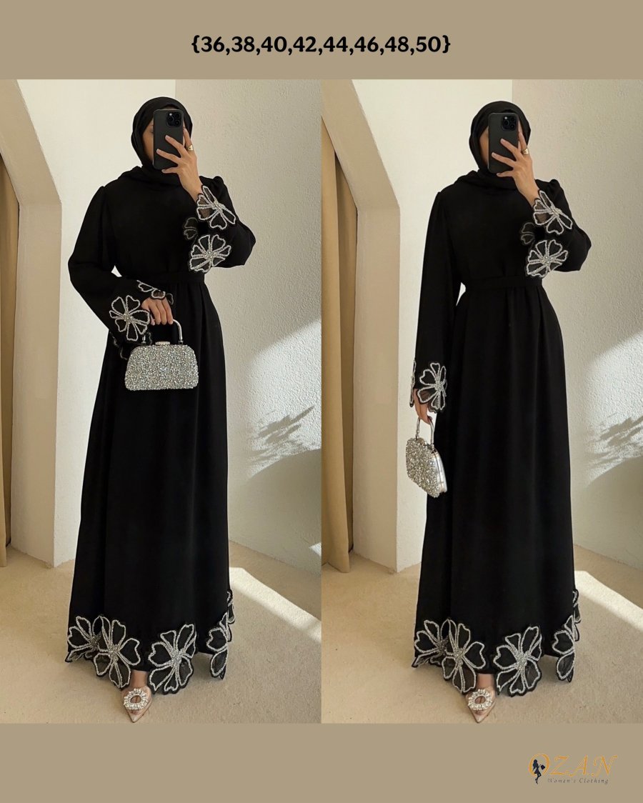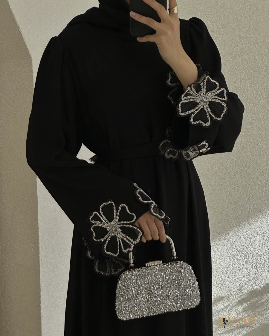 مطرزّة بالورد الفضي على الاكمام و الطرف السفلي